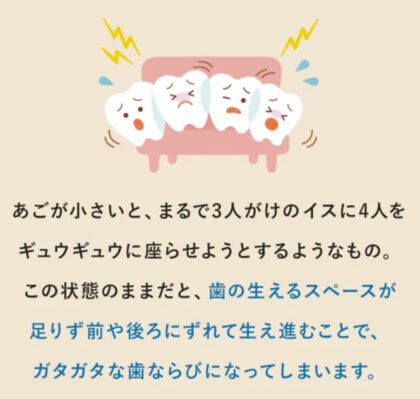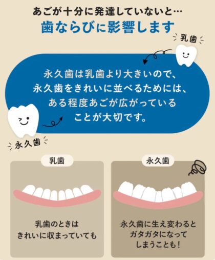 あごの発達を促し、「歯ならびの土台|をつくることです。歯ならびの土台作りには顎の発達が大事です。