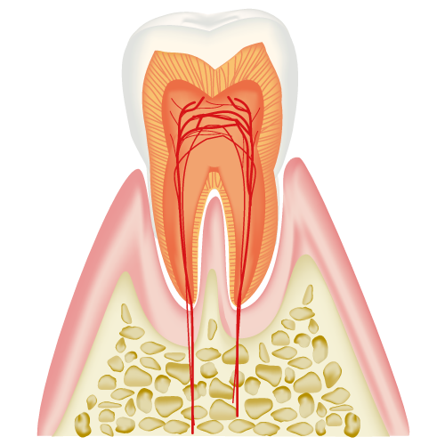 C1はエナメル質が溶け、小さな穴が空いた状態です。この段階では痛みはありません。むし歯の大きさによっては麻酔を使わずに治療が可能な場合もあります。